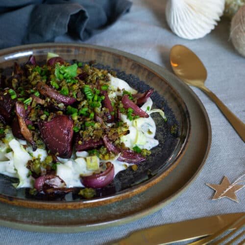 1. Hey Greet, er bestaat geen alternatief voor rode biet, die uniek is in zijn soort qua smaak Ć©n voedingswaarden, met die dieppaarse kleur šŸ™‚ Maaaaaar… geroosterde pastinaak zou hier misschien ook nog wel lekker bij zijn. Zonder balsamicoazijn welteverstaan!! Die hoort echt bij de rode bieten.